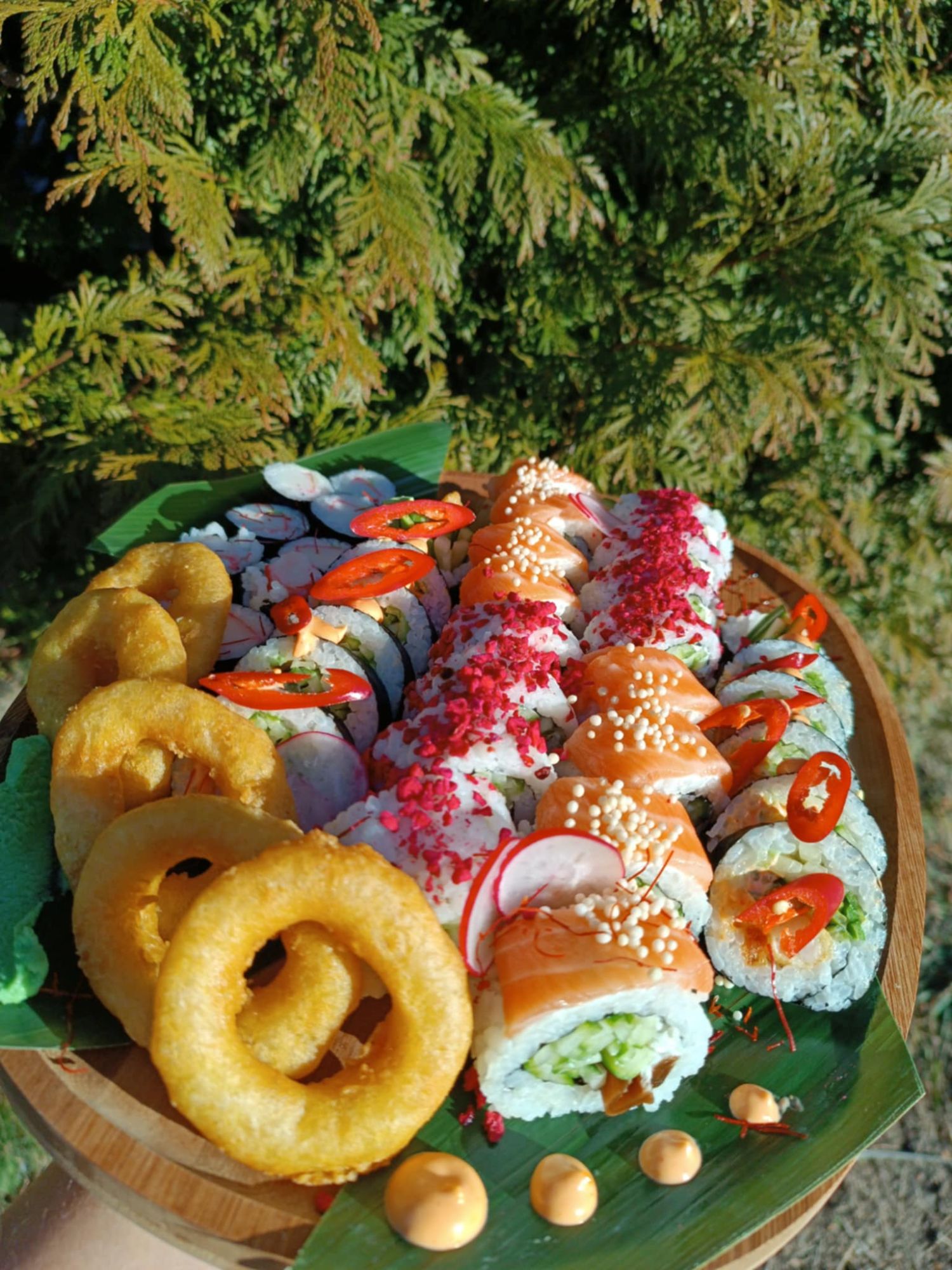 Łosoś grillowany, ostry majonez, ogórek, tykwa, rolka zawinięta w łososia surowego45,00 zł -